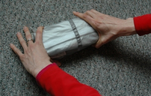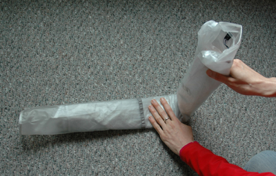 Now, here is how to do it! First, make sure it is cleaned and dried after its last use. Then, lay it out on the floor with the velcro closed and the front-side up, as such: